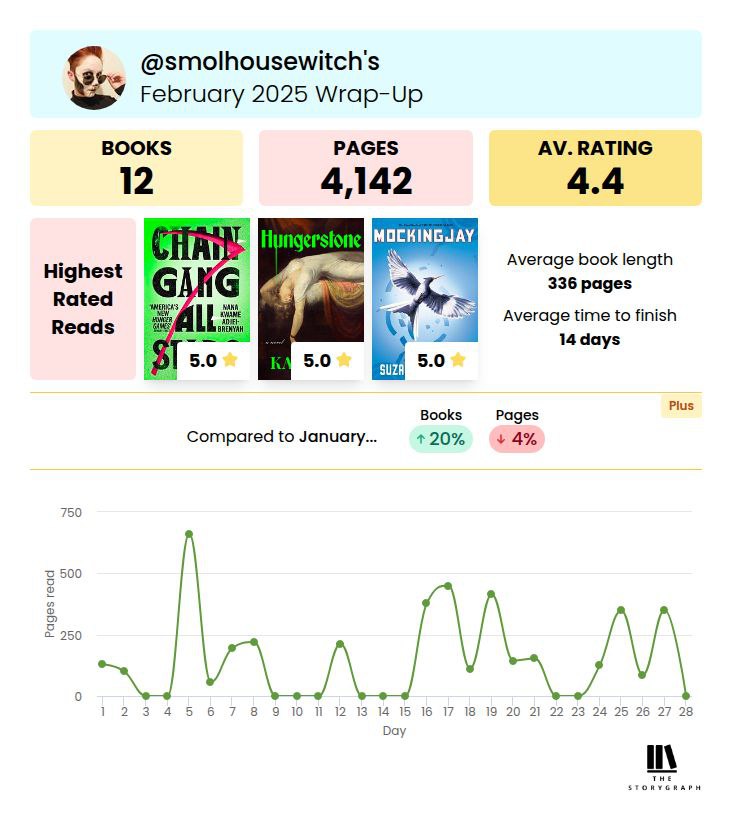 February was another good reading month! I hit a lull in the middle of the month but managed to get myself out of it and sneak in a few more stellar reads before the end of the month.